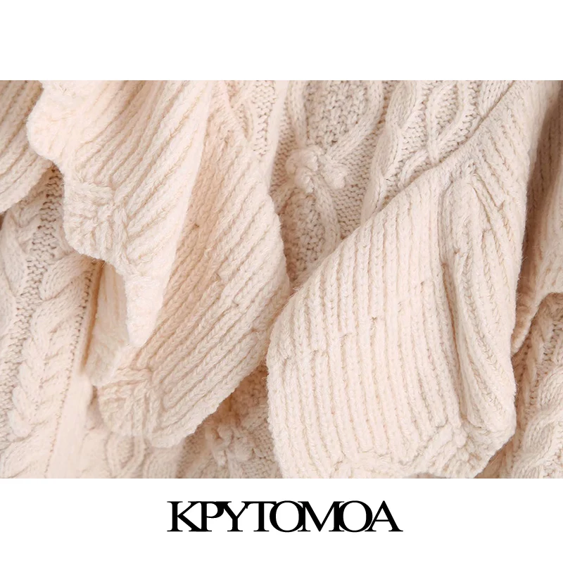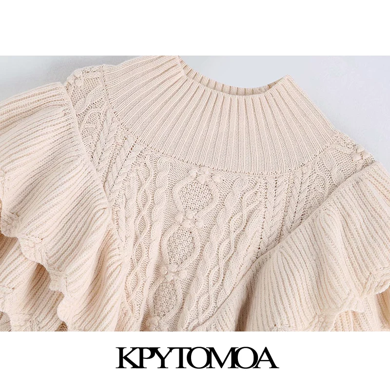 Best Offer Vintage Stylish Short Style Ruffles Knitted Sweater Women 2019 Fashion High Neck Lantern Sleeve Fem