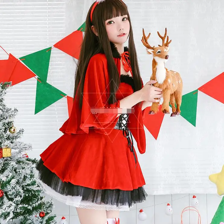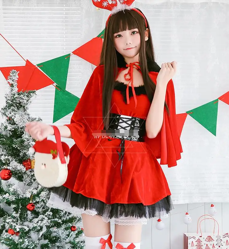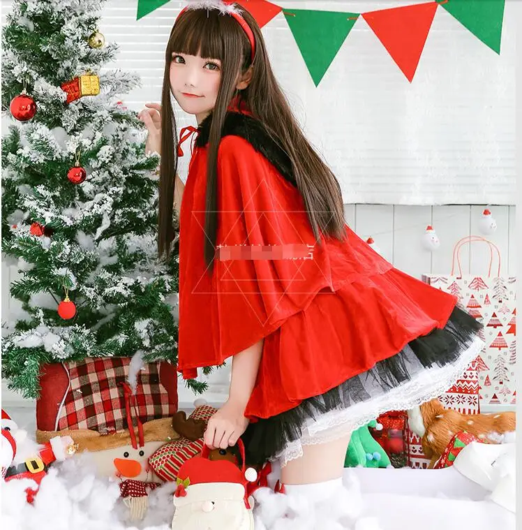 Mega Sale Festival Dress Up Stage Clothing Christmas Party Dress Red Shawl Cloak Costume For Woman Christmas