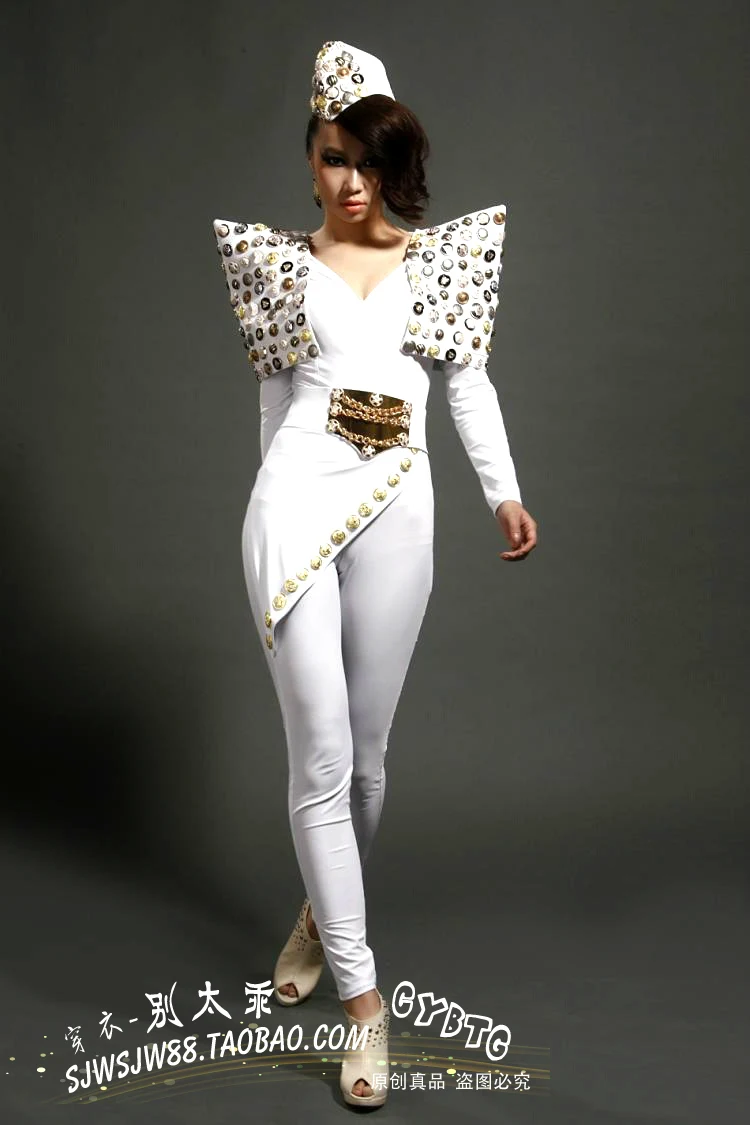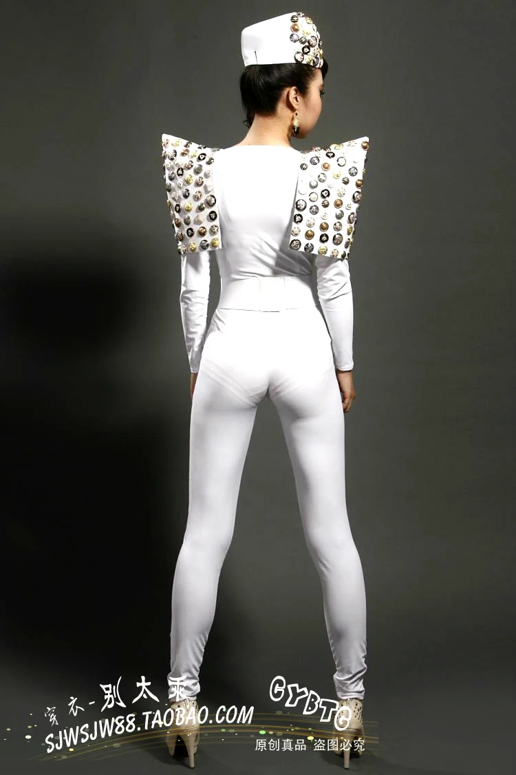 Hot Deal Female Singer Dance Costumes White military costume Concert performance clothing Nightclub bar stag