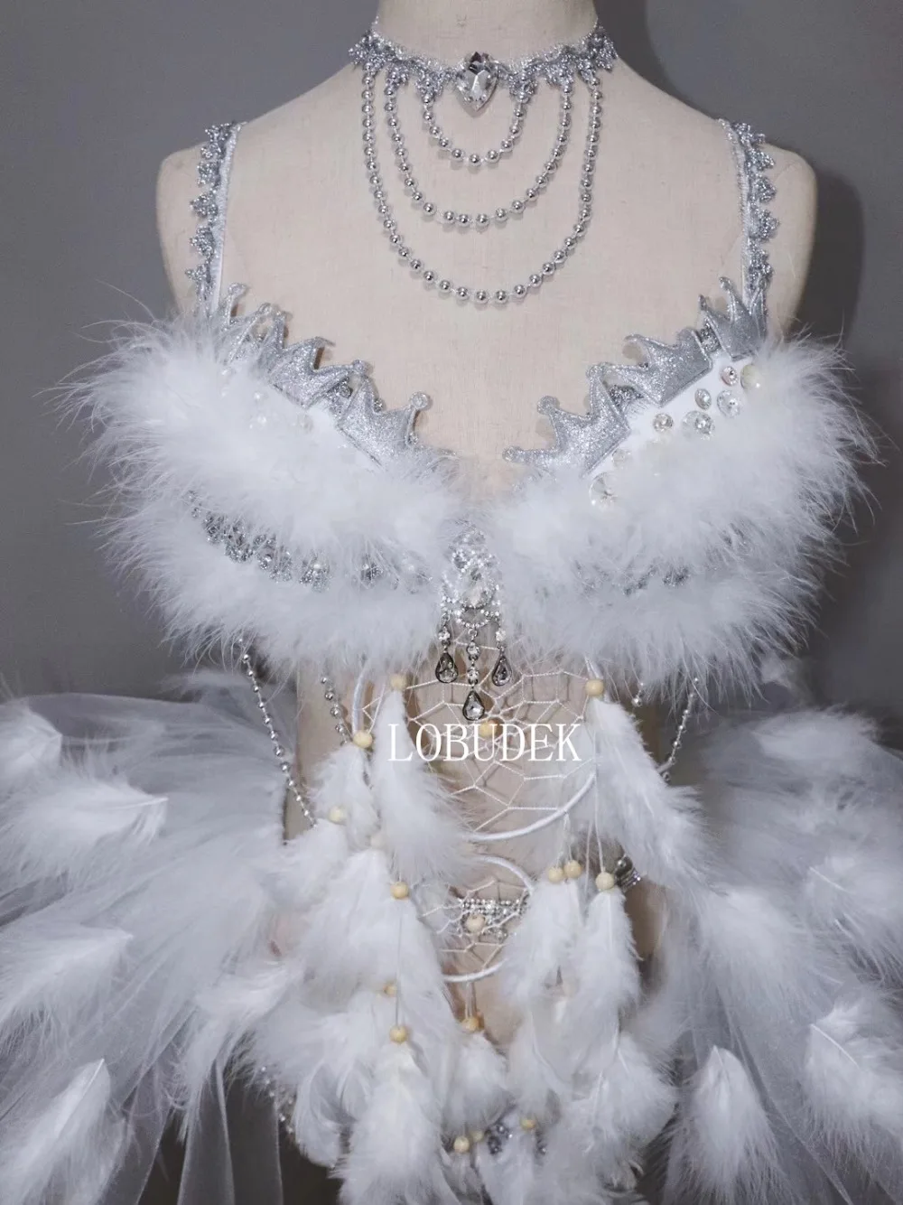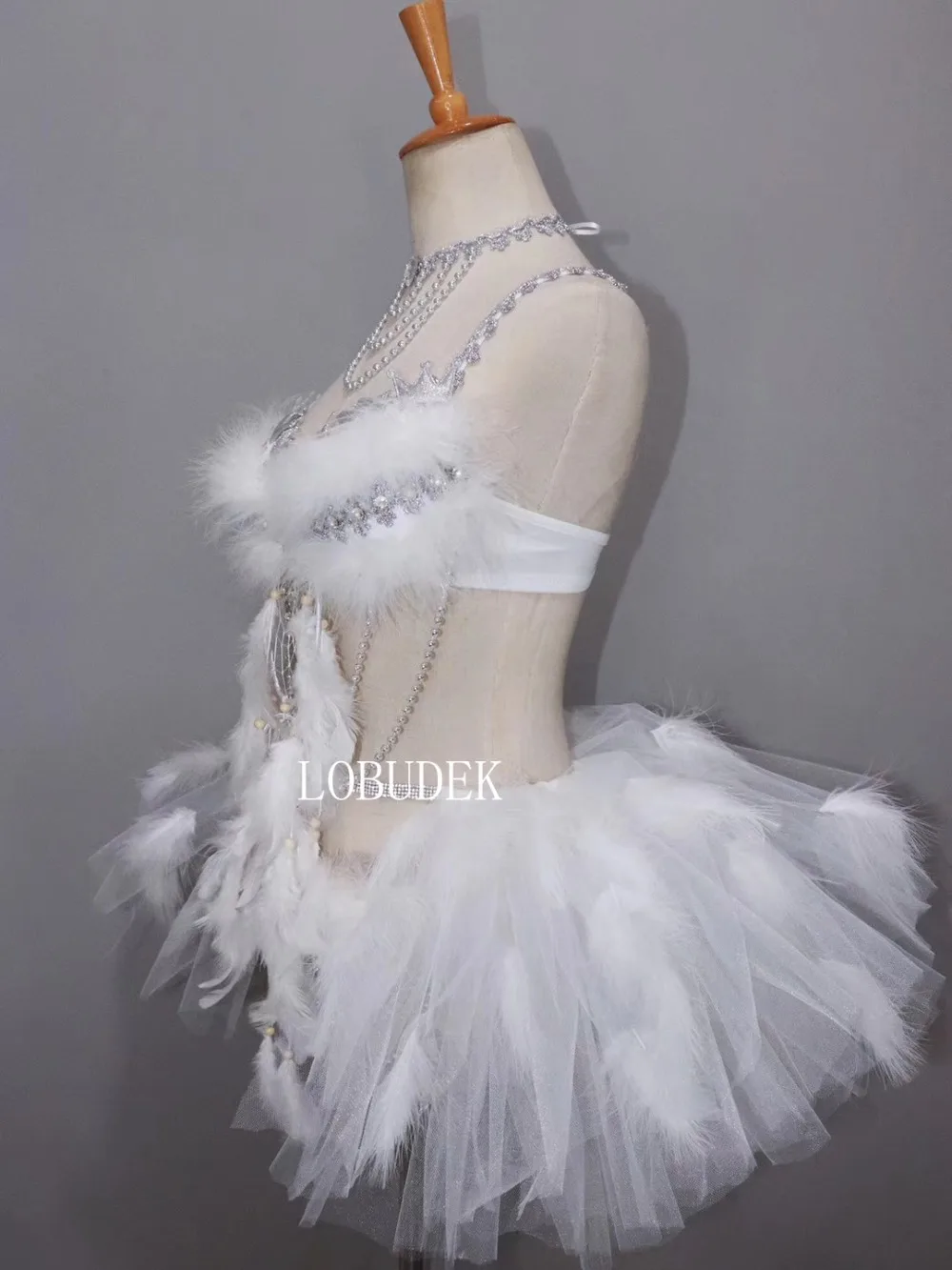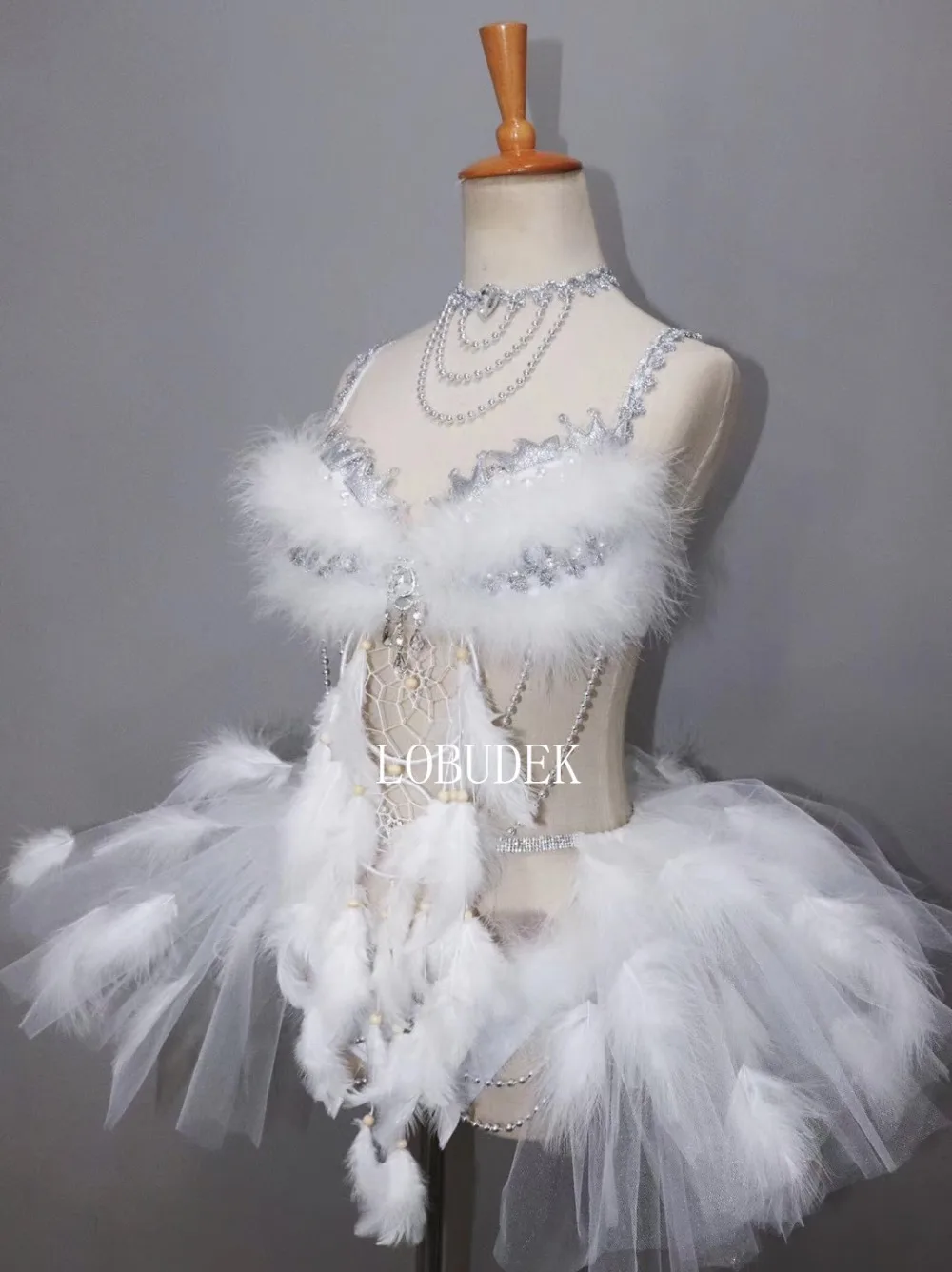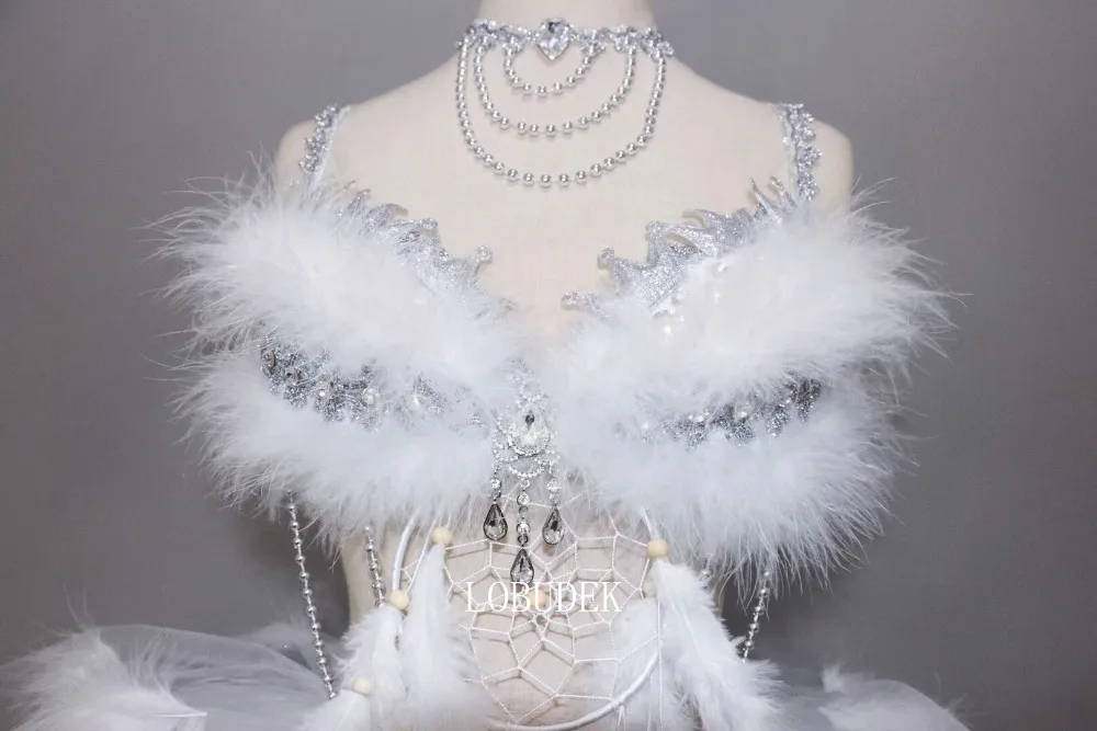 Buy this Christmas Rave Party Nightclub Clothing Sexy Women Modern Dance Outfit Silver Crystals White Feathe with incredible discounted price! This item is also has features up to 25% OFF...!